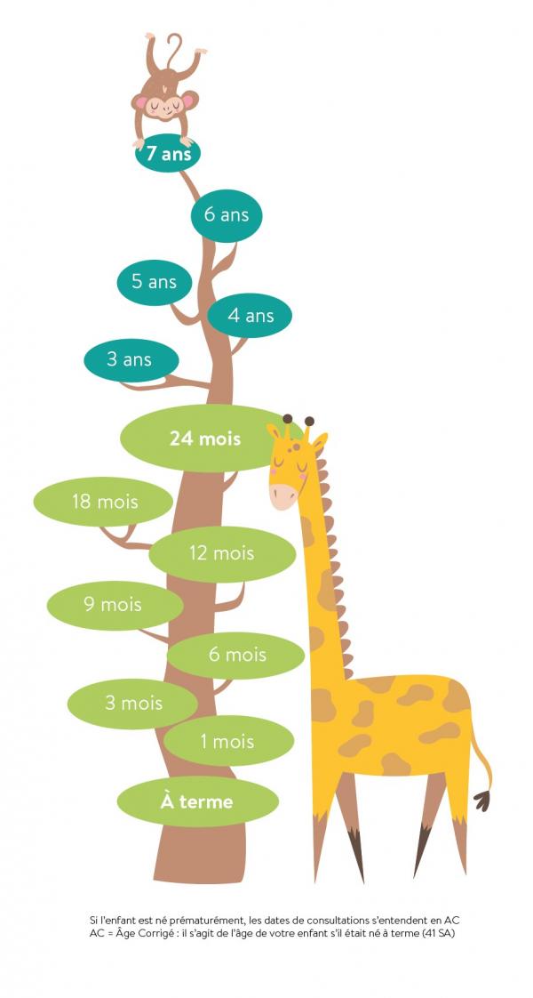 Votre enfant bénéficiera d’une dizaine de consultations spécifiques jusqu’à ses 7 ans selon un calendrier établi. Si besoin, le médecin référent pourra vous orienter vers des professionnels spécialisés.
