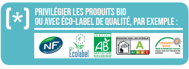 Je préfère une lessive avec un écolabel (*). Je respecte les doses et je limite l’usage des adoucissants, des détachants et blanchissants.